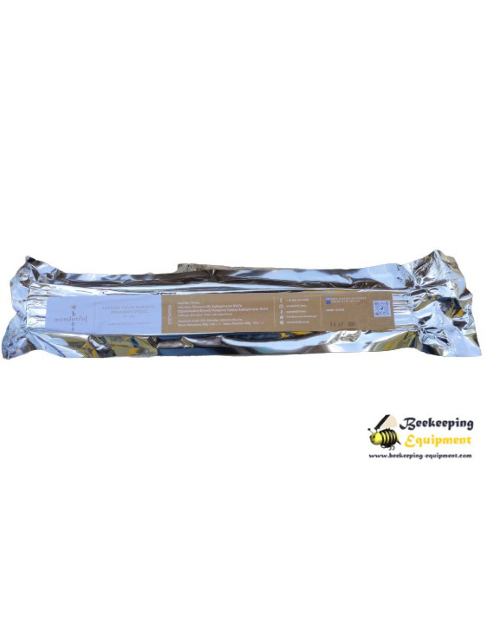 Oxalic acid strips are essentially cut cellulose strips soaked in a complete homogenized solution of Glycerin and Oxalic Acid in the proper proportions. The active substance oxalic acid due to the low Ph has an acaricidal effect against Varroa, however the addition of glycerin significantly prolongs the action of oxalic acid because as a viscous non-volatile substance it binds the acid providing a slow release from the cellulose strips which can accordingly season to range from 25-40 days. The ¨collaboration¨ of glycerin with oxalic acid combined with the appropriate absorbent material (cellulose) provides a high and prolonged effectiveness in a 100% ecological way, which makes it an excellent treatment significantly inhibiting varroa even with the presence of brood in the colony with efficiency rates <90%.